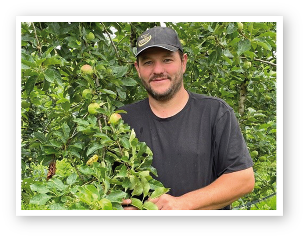 Nous sommes producteurs de fruits labellisés bio, essentiellement des pommes, avec environ 200 tonnes et une trentaine de variétés différentes. Cela nous permet de commercialiser des pommes pratiquement toute l’année. Notre engagement dans le culture biologique permet de favoriser le goût et la saveur de nos fruits tout en respectant l’environnement.